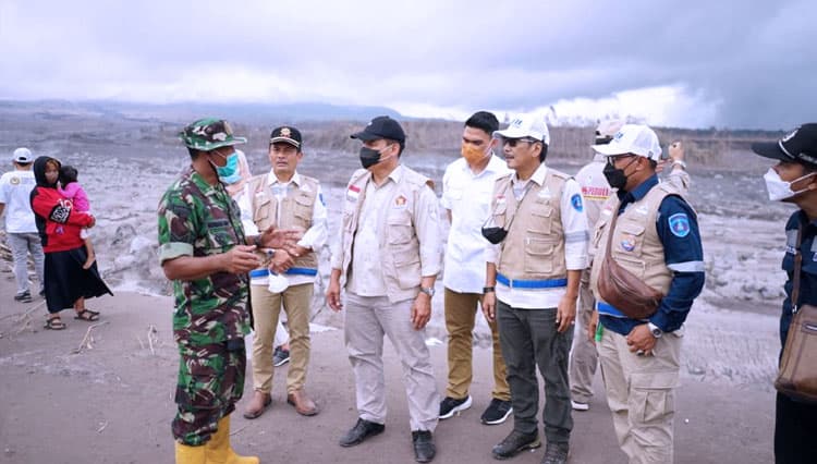 TIMES Temanggung/Ketua Dewan Penasehat Partai Gerindra DPD Jawa Timur, Bambang Haryo Soekartono bersama DPC Partai Gerindra Surabaya, Lumajang dan Malang saat meninjau dan menyerahkan bantuan Bencana Erupsi Gunung Semeru.Foto Partai Gerindra Jatim
