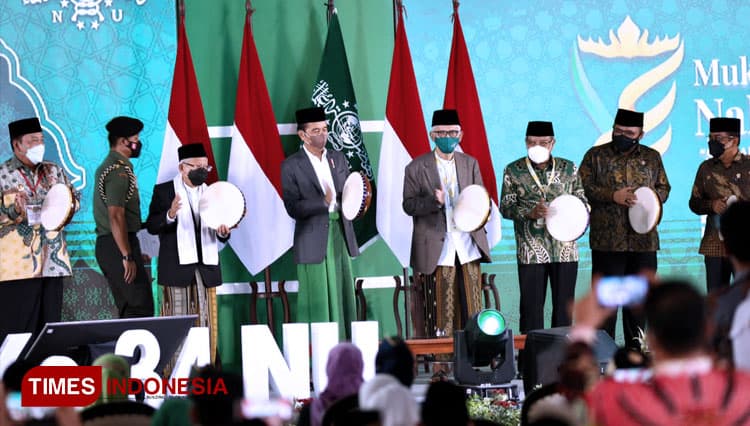 TIMES Temanggung/Presiden Jokowi (Joko Widodo) membuka secara resmi Muktamar Ke-34 Nahdlatul Ulama di Pondok Pesantren Darussa’adah, Gunung Sugih, Lampung Tengah, Rabu (22/12/2021). (FOTO: Moh Ramli/TIMES Indonesia)